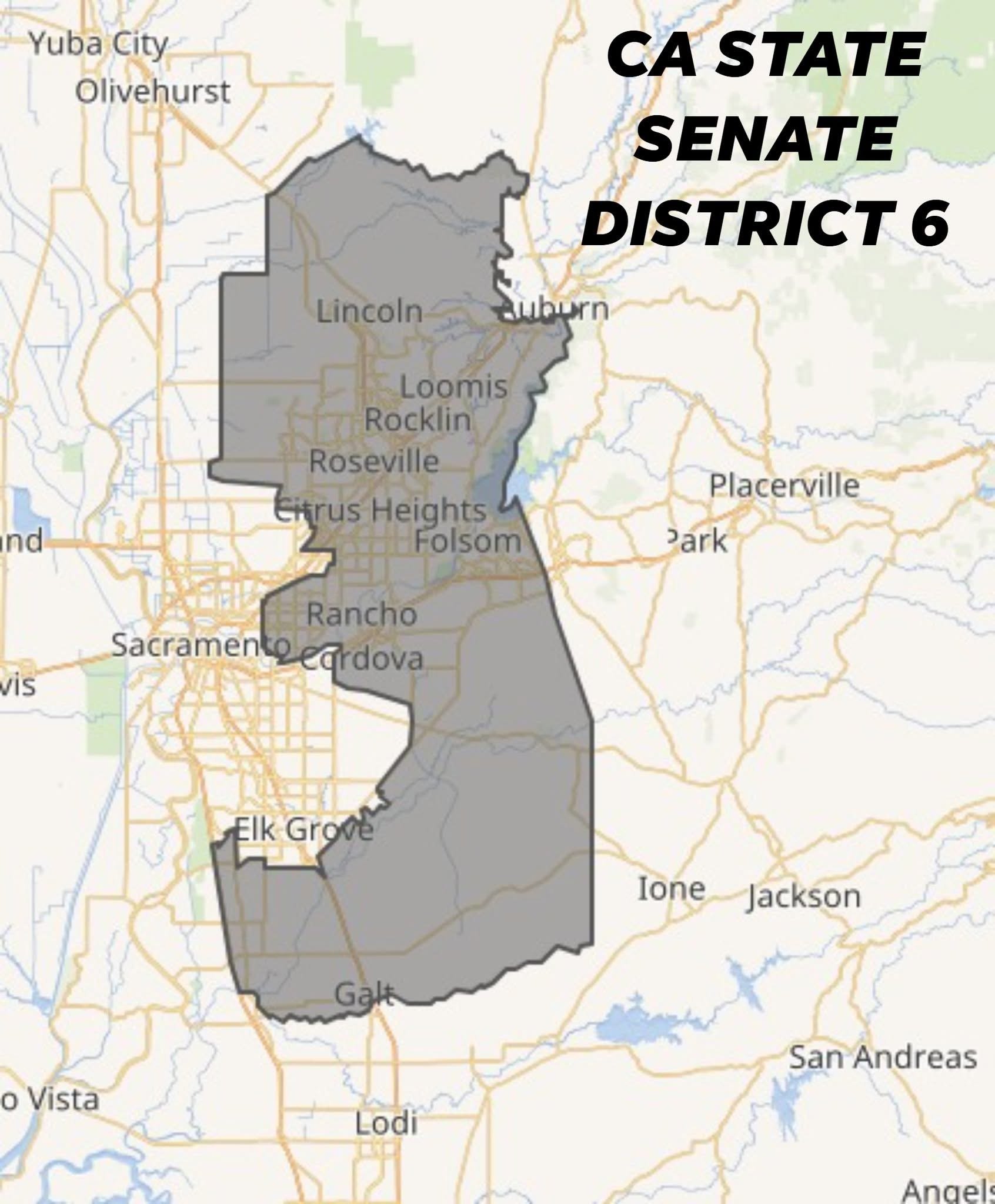 Sacramento County: Antelope, Arden-Arcade, Carmichael, Citrus Heights, Clay, Fair Oaks, Folsom, Foothill Farms, Franklin, Galt, Gold River, Herald, Mather, North Highlands, Orangevale, Rancho Cordova, Rancho Murieta, and Wilton.